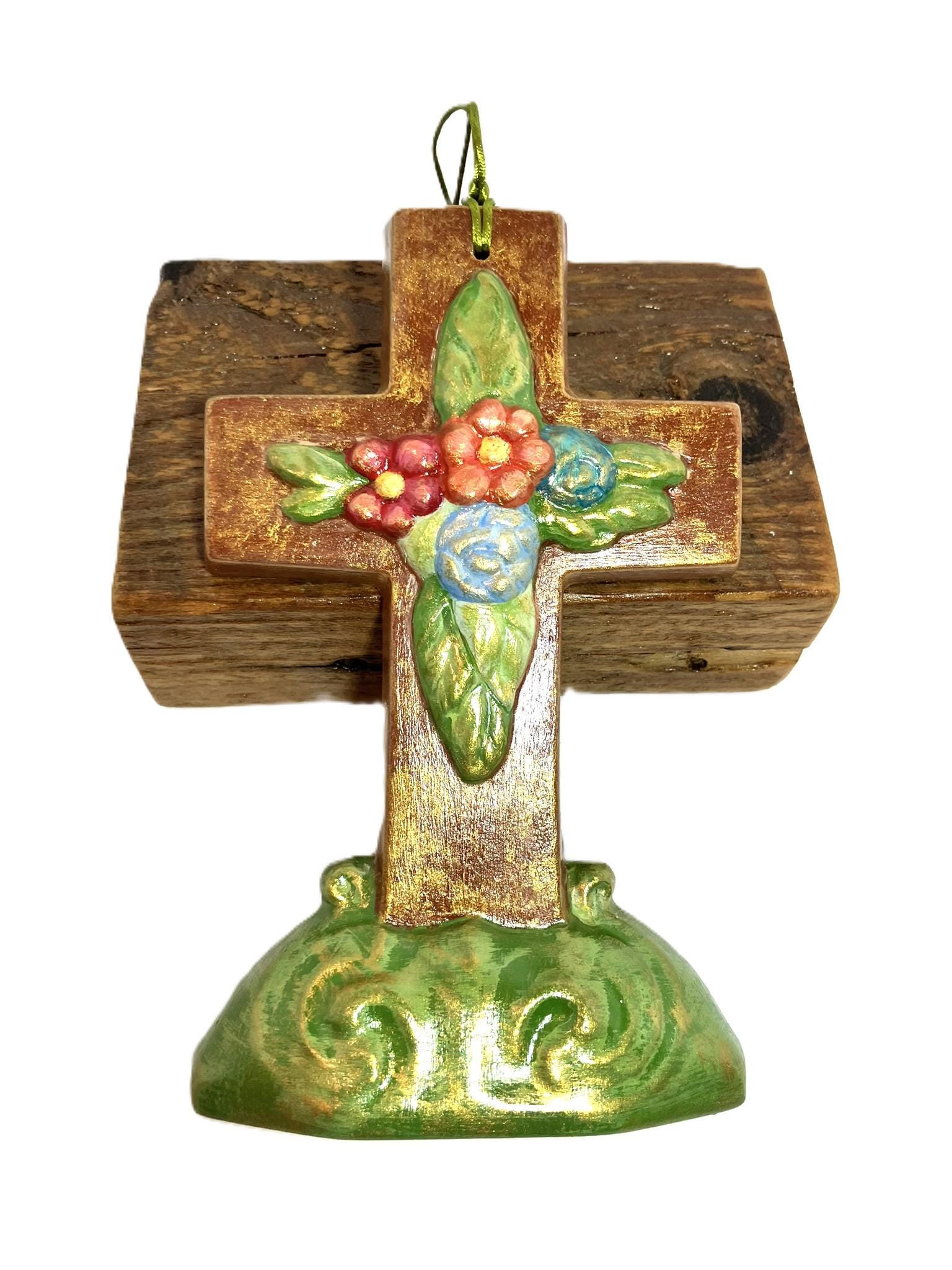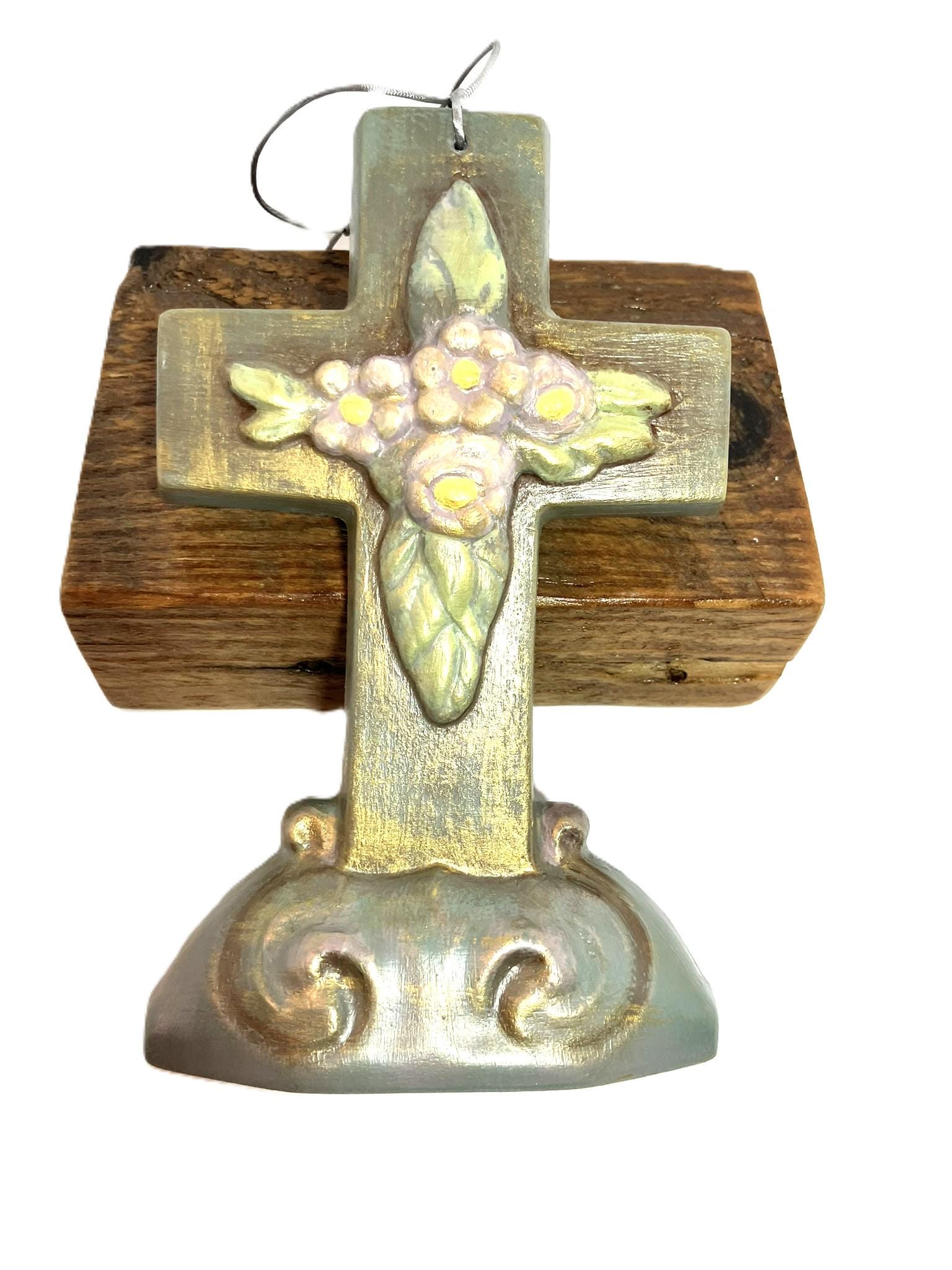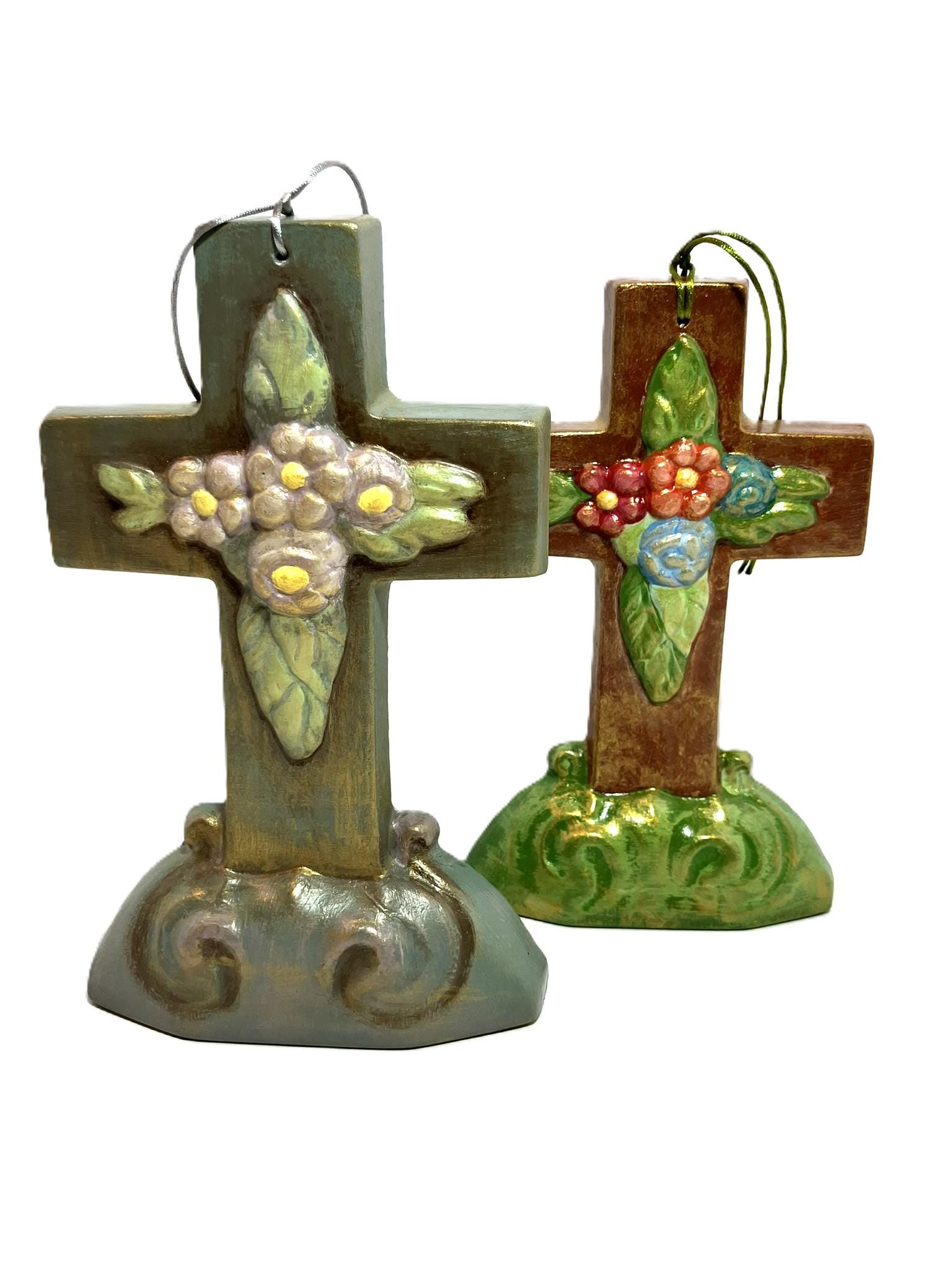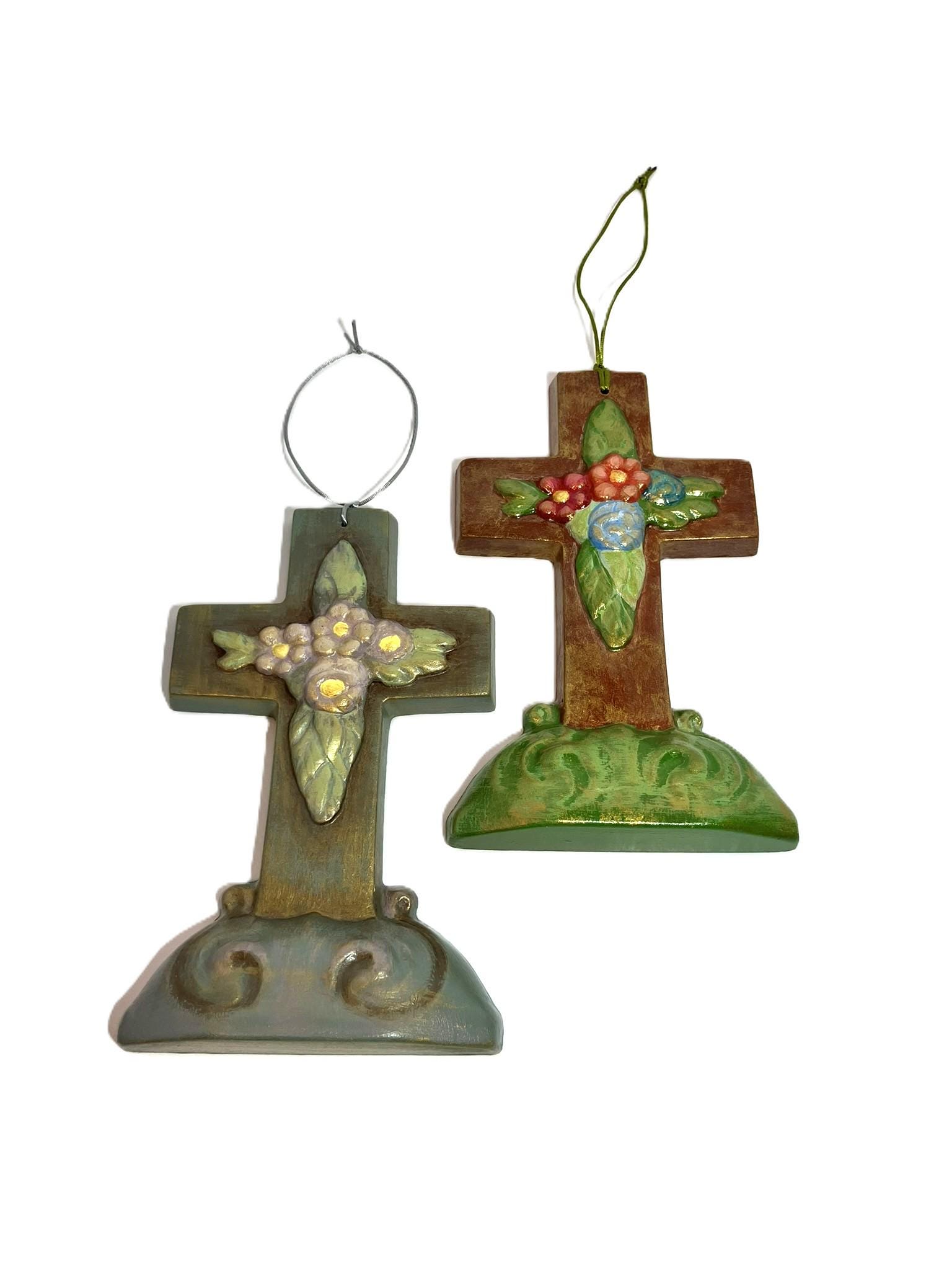 Handmade hanging antique reproduction Easter mold cross. Made from plaster of paris, hand painted, and sealed. Dimensions: 4-1/2" w x 7-1/8" t x 1-1/8" th. Nostalgic! Please select the one that you desire!